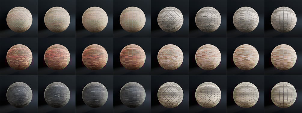 Each seamless PBR Brick texture comes in two distinct sizes: 2.5 meters and 5 meters in width. The 2.5-meter texture offers greater detail, perfect for close-ups, while the 5-meter texture minimizes repetition, making it ideal for large facades. Each texture comes with 4 different bond styles. Running, freestyle, english and stacked bond.