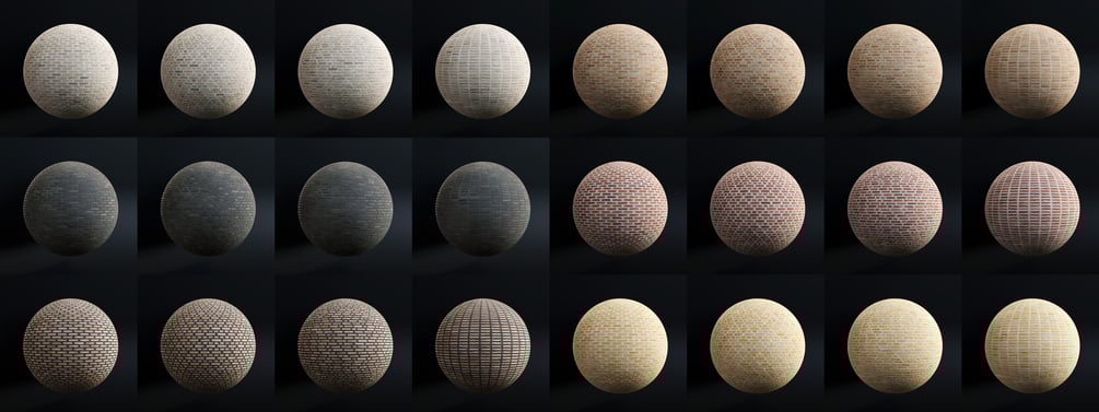 Each seamless PBR Brick texture comes in two distinct sizes: 2.5 meters and 5 meters in width. The 2.5-meter texture offers greater detail, perfect for close-ups, while the 5-meter texture minimizes repetition, making it ideal for large facades. Each texture comes with 4 different bond styles. Running, freestyle, english and stacked bond.